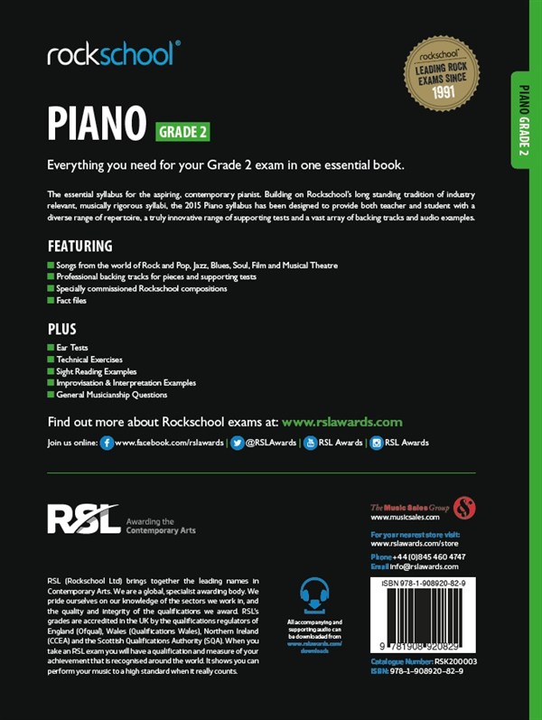 Rockschool Piano is the essential syllabus for any aspiring contemporary pianists. Building on Rockschool‘s long standing tradition of industry relevant, musically rigorous syllabi, the Grade 2 book has been designed to provide both teacher and student with a diverse range of repertoire, a truly innovative range of supporting tests and a vast array of backing tracks and audio examples.