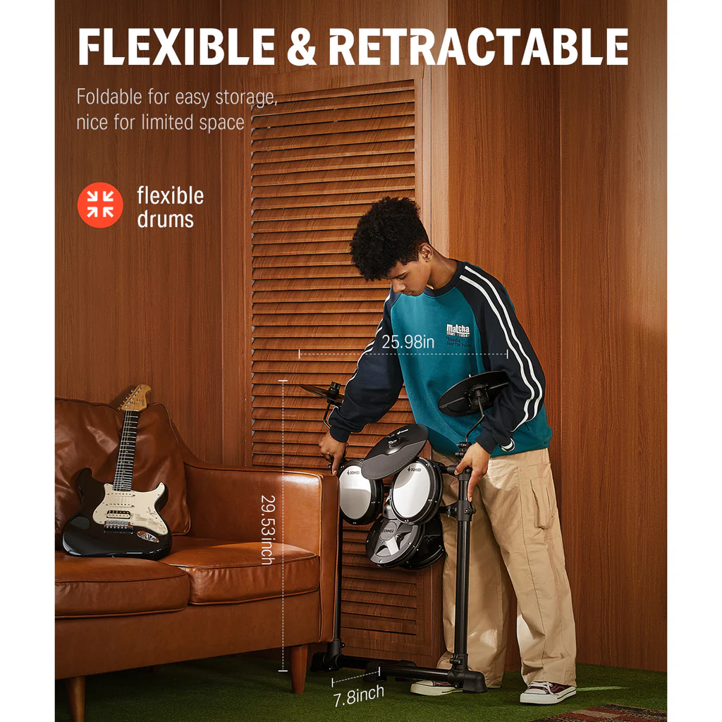 Donner DED80 Beginner Mesh Head Electric Drum Set Features: