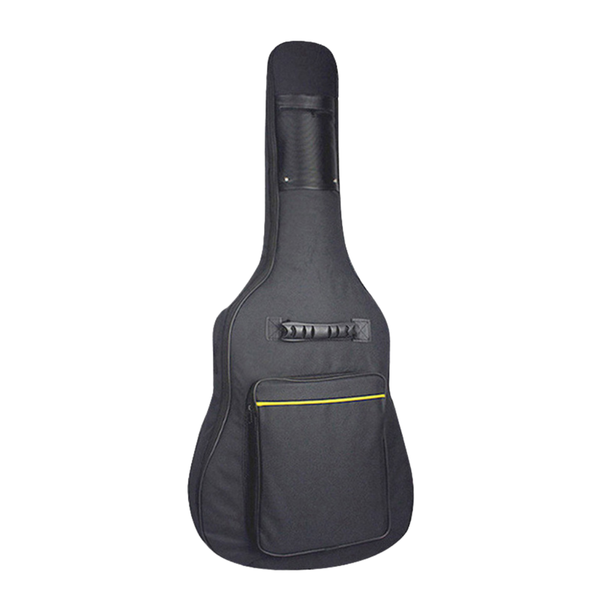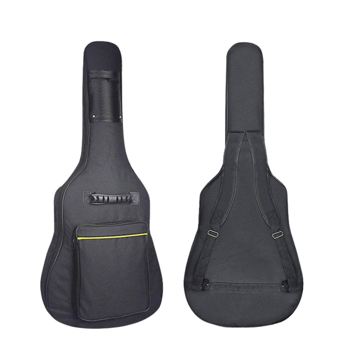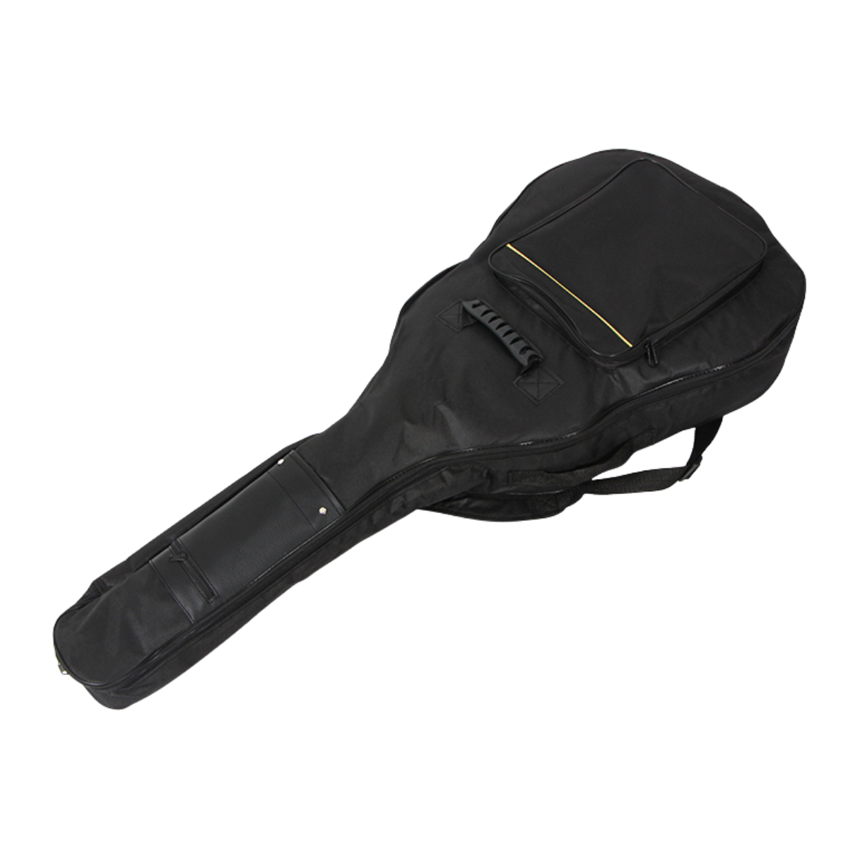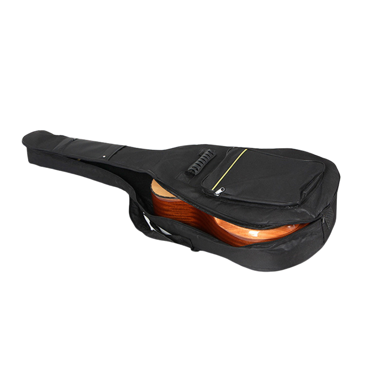 The Trax 5mm Padded Acoustic Guitar Gigbag is a 5mm padded gig bag for acoustic, dreadnought or western guitars (41″). It is black in colour with a yellow lining front pocket and is made from Oxford fabric with high density foam 5mm padding. It is ideal for all standard Acoustic Guitars and features two adjustable straps and carry handle for easy transportation. Perfect for those on the go, this guitar bag provides a safe and secure option for travel to gigs, lessons or practices. Including a front pocket for storing any extra accessories, this durable guitar bag is the ideal choice for those seeking functional simplicity at a bargain price. It is suitable for any guitar from a 39″ to a 41″ guitar. This guitar bag is lightweight and weighs just 0.55kg.
