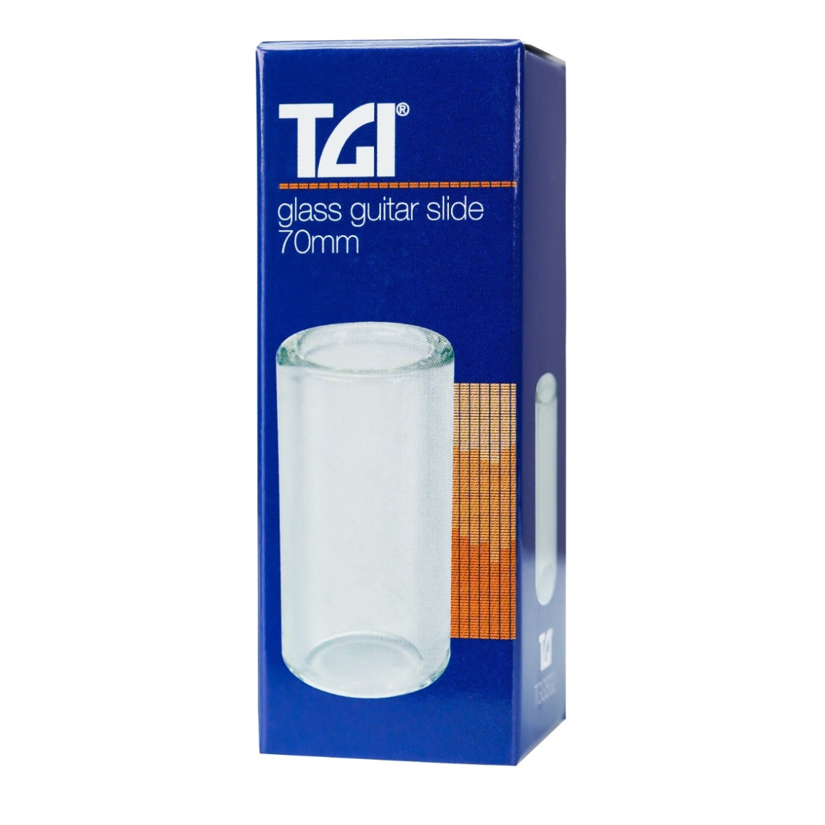 The TGI Glass Guitar Slide offers a smooth, warm response, producing distinctively clear and sustained tones. Made from durable glass, the slide allows the player to glide along the strings and play versatile effects on the guitar. Internal measurements: 70mm x 21mm.