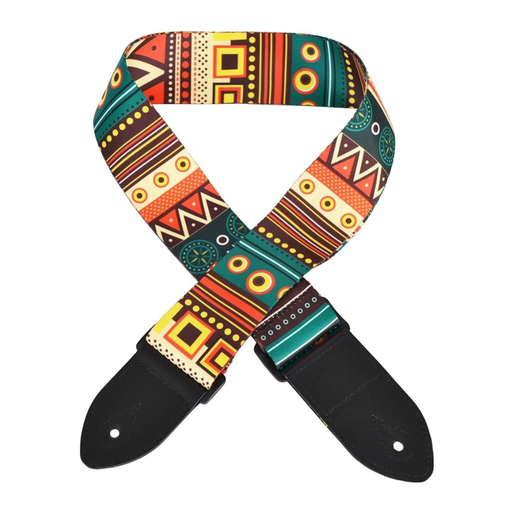 The Trax Guitar Strap Aztec is a guitar or instrument strap made with strong nylon webbing material, PU leather fobs and plastic slide buckle for length adjustment. Each strap is printed with a themed design. This strap features an aztec design.