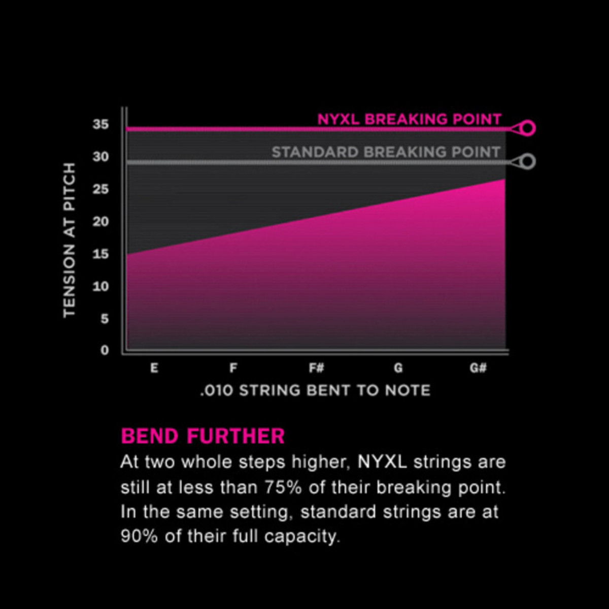 - Fusion Twist technology assures NYXL electric guitar strings stay in tune 131% better than standard strings, while the NY Steel core wire makes them up to 40% stronger—bent two whole steps higher, NYXL strings are still at less than 75% of their breaking point.